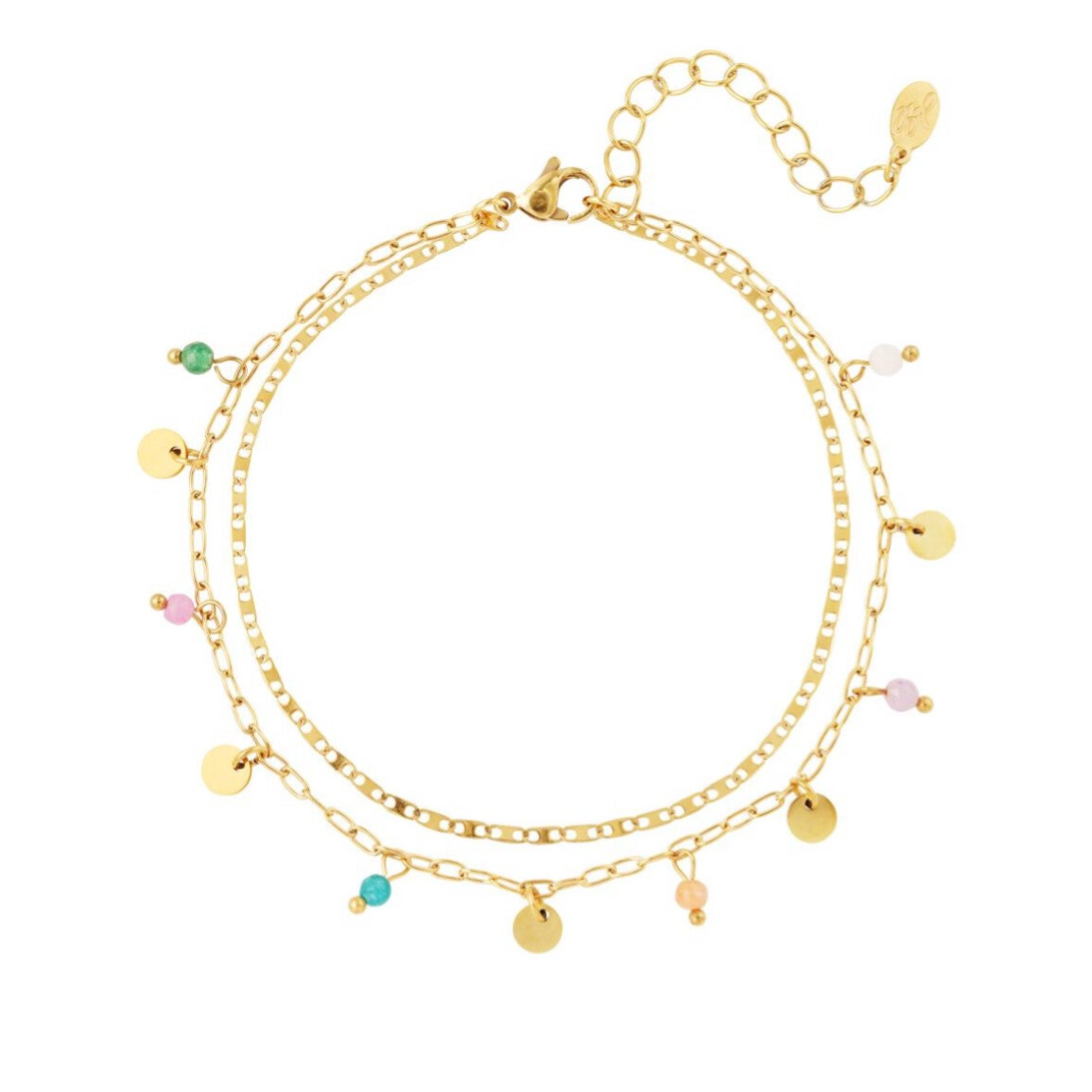 Deze dubbele roestvrijstalen enkelband met kleurrijke is perfect voor aankomende zomer! Het enkelbandje is gemaakt van stainless steel, zwemmen met dit sierraad om is dus geen probleem.