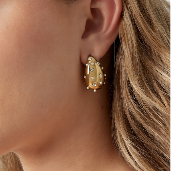 Een variant op de trendy druppel oorbellen; deze mega leuke druppel oorbellen met steentjes. De oorbellen zijn gemaakt van stainless steel, waardoor ze niet verkleuren.