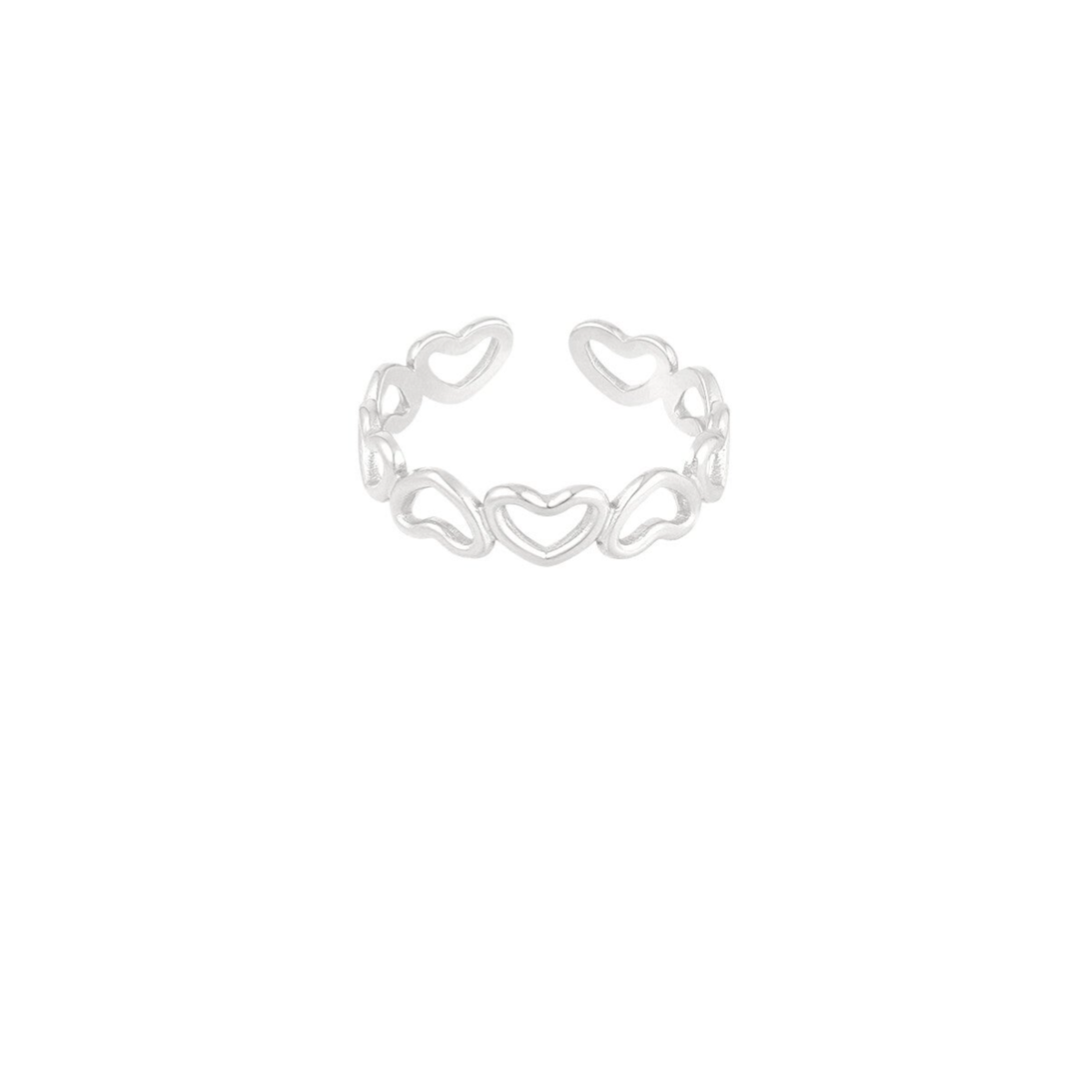 Deze ring met open hartjes is gemaakt van stainless steel, dus verkleurt niet. De ring is verstelbaar.