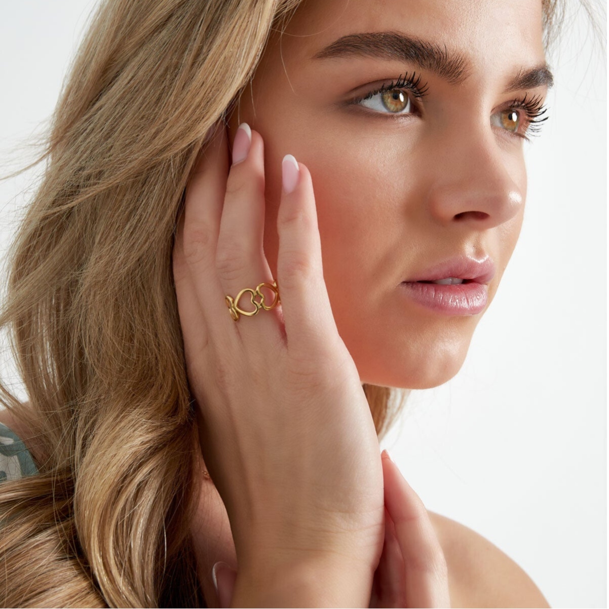 Deze ring is gemaakt van stainless steel, waardoor de ring niet verkleurt. Deze trendy hartjes ring is verstelbaar.