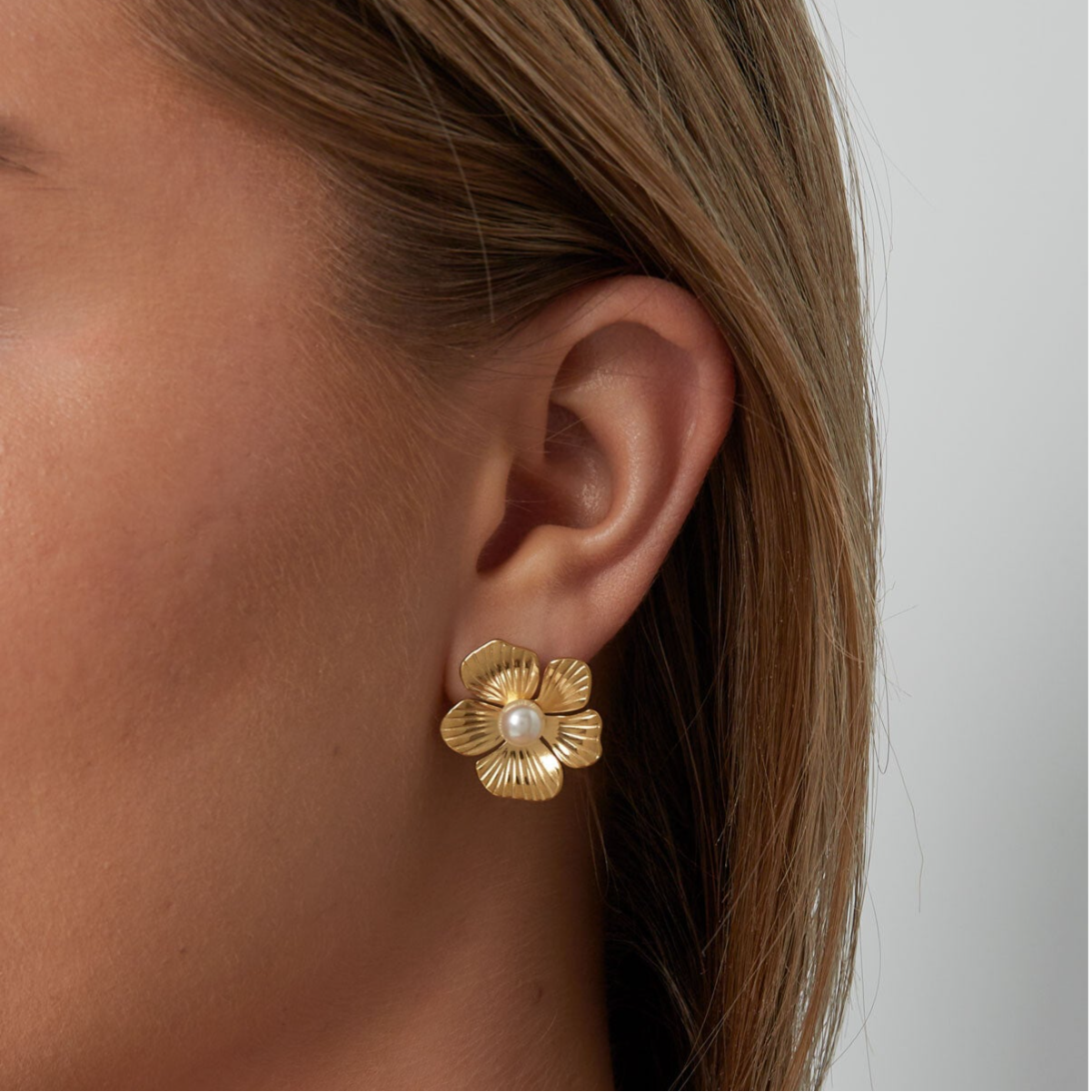 Deze bloem oorbellen met parel zijn gemaakt van stainless steel, wat betekent dat het sieraad 100% waterproof is.
