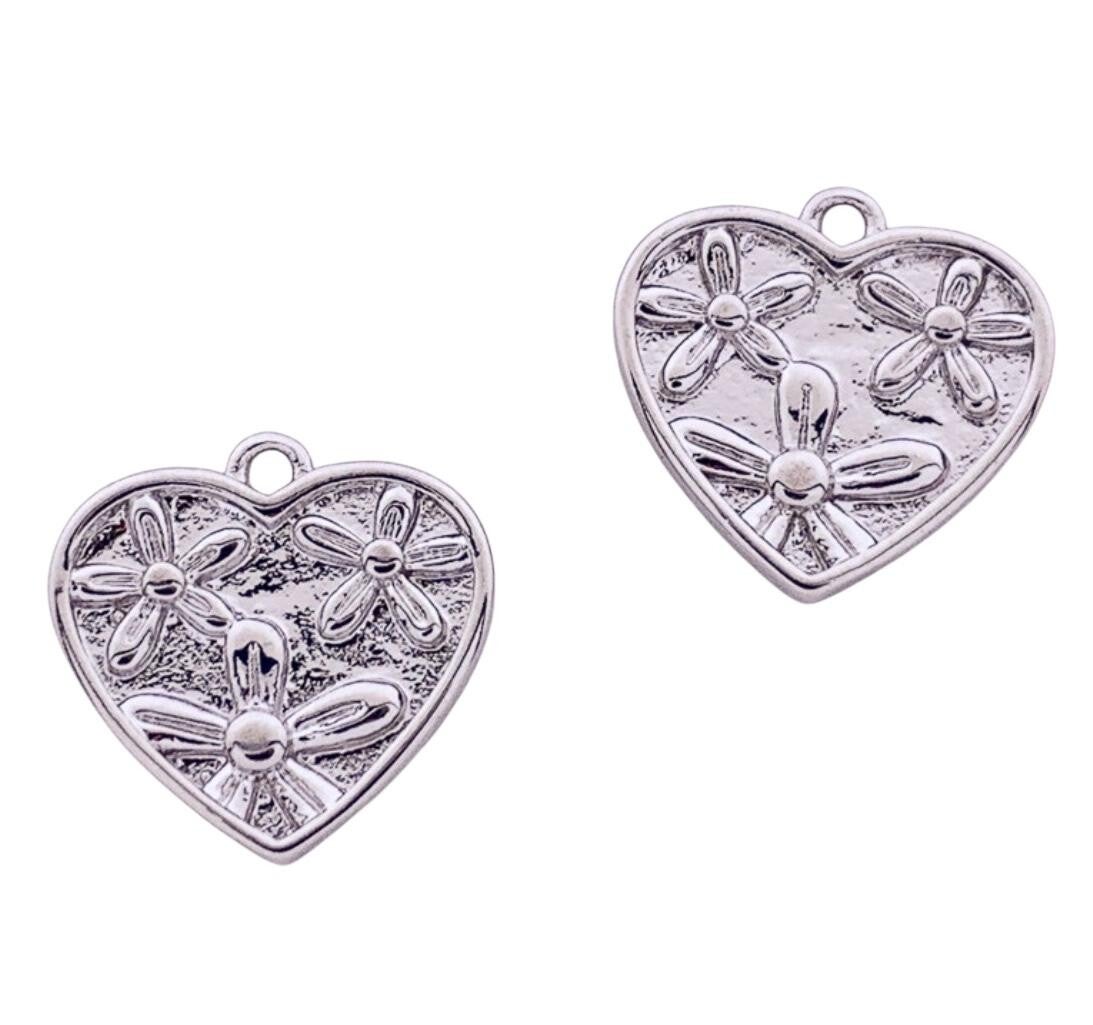 Deze bedel van een hart met bloemen is gemaakt van zilver stainless steel (rvs). De afmetingen zijn: 14x14mm (per stuk).