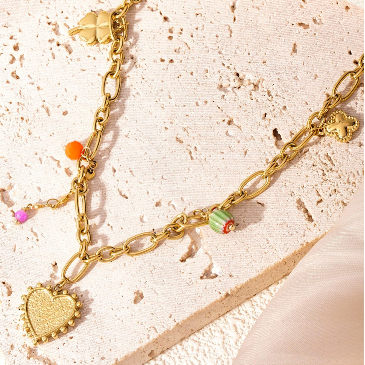 Deze leuke kleurrijke ketting is gemaakt van stainless steel en verkleurt dus niet! De ketting is 38 cm en met 5 cm verstelbaar.