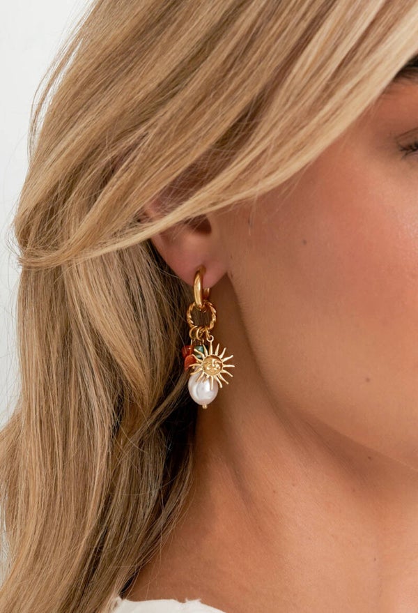 Deze oorbellen zijn gemaakt van stainless steel, imiation pearl, Crystal, hematite.